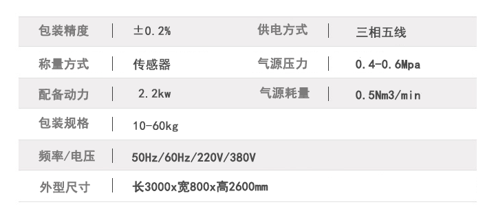 粉末包裝機技術參數(shù):